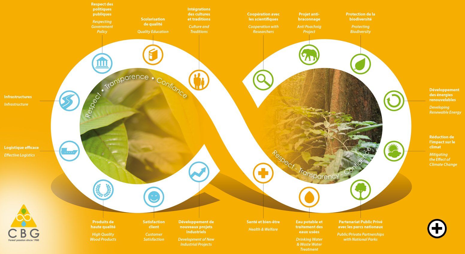 "CBG s’inscrit dans le temps long et la création de valeur et c’est pour cela qu’elle bénéficie de relations privilégiées avec les autorités de tutelle, les parties-prenantes, les scientifiques, ses clients et ses partenaires financiers. Il s’agit en fait d’une communauté de valeurs qui se fonde sur un équilibre subtil entre forêt et produit bois. Tout est mis en oeuvre pour s’inscrire dans un positionnement exemplaire en matière de foresterie tropicale."